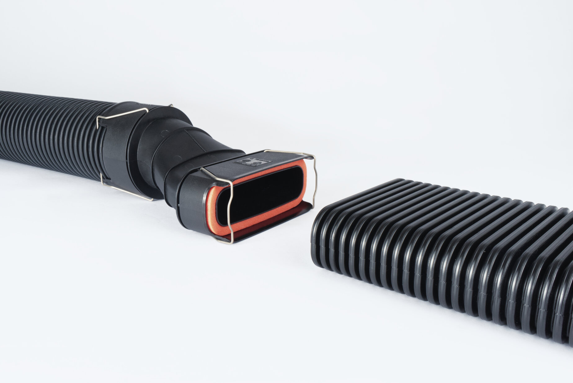 Die neue Rillengeometrie macht die Rohre äusserst flexibel - auch enge Radien können gebogen werden - und trotzdem stabil genug, um trittsicher verlegt und auch einbetoniert werden zu können. Kleine Details wie die Metermarkierung erleichtern die Arbeitsabläufe auf dem Bau. Abgerundet wird das bequeme Handling durch ein kompaktes Schneidewerkzeug, mit dem die Rohre mühelos auf die gewünschte Länge zugeschnitten werden können.