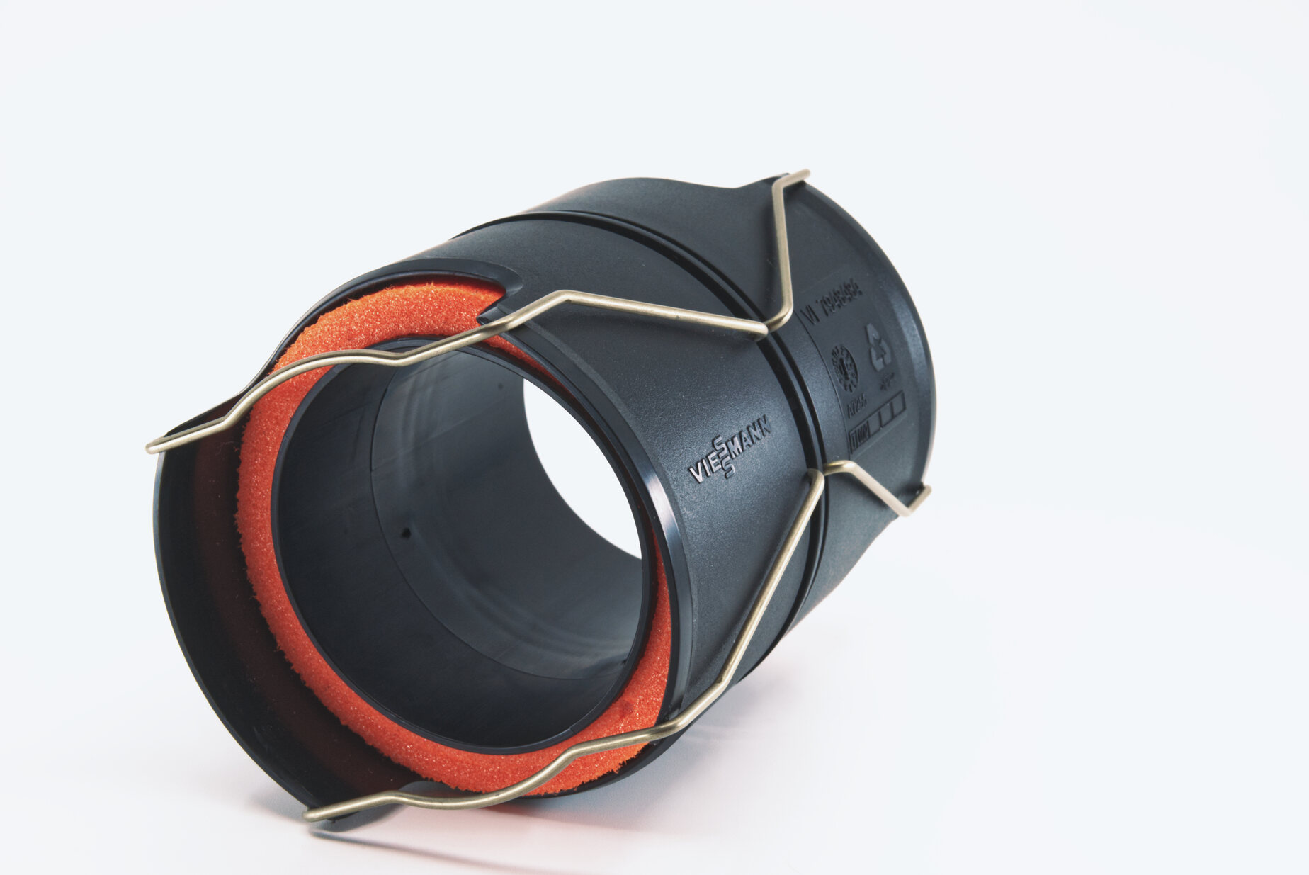 Die Signalfarbe der integrierten Dichtung macht sofort deutlich, wenn eine Verbindung noch nicht gut genug verschlossen ist. Fixierbügel aus nicht rostendem Federstahl an den Formstücken gewährleisten einen sicheren Halt des Lüftungskanals. Es braucht keine Kleinteile als Befestigungsmaterial, die verloren oder vergessen gehen könnten. Zudem kann bei Bedarf die Verbindung von Hand wieder gelöst werden.