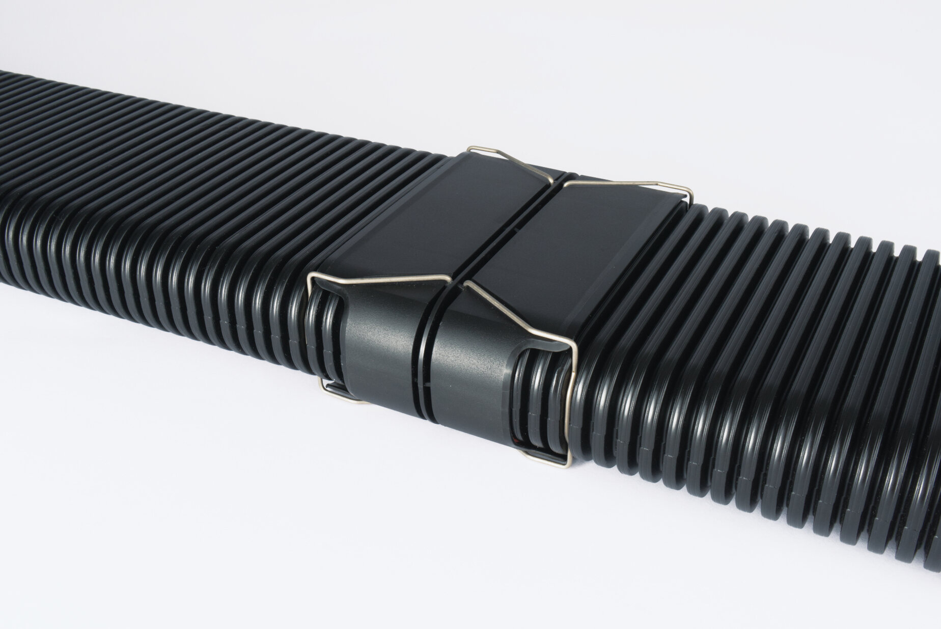 Die neue Rillengeometrie macht die Rohre äusserst flexibel - auch enge Radien können gebogen werden - und trotzdem stabil genug, um trittsicher verlegt und auch einbetoniert werden zu können. Kleine Details wie die Metermarkierung erleichtern die Arbeitsabläufe auf dem Bau. Abgerundet wird das bequeme Handling durch ein kompaktes Schneidewerkzeug, mit dem die Rohre mühelos auf die gewünschte Länge zugeschnitten werden können.