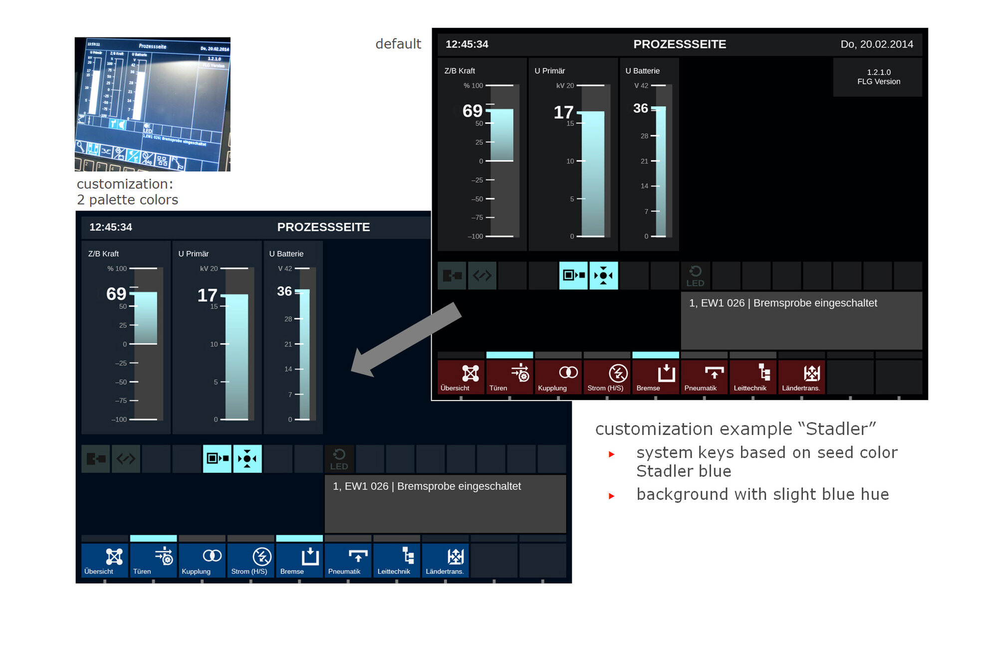 PIXY bietet Visualisierungslösungen für den Schienenverkehr an. Um die Bedürfnisse bezüglich Anzeige- und Bedienkomponenten auf dem Bildschirm zu eruieren, hat Tribecraft Fahrpersonal im Cockpit begleitet. Auf dieser Basis haben wir das Konzept und die Grafik für einen Baukasten von Interface-Elementen erarbeitet. Dieses System bietet den Entwicklern die nötigen Customizing-Möglichkeiten für unterschiedliche Kundenanforderungen, es stellt aber in erster Linie Übersichtlichkeit und Lesbarkeit sicher.