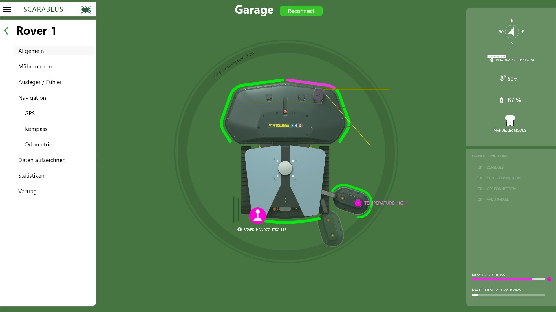 Neben dem Code, der auf dem Roboter selbst läuft, ist natürlich auch ein Backend sowie Software zur Steuerung und Planung des Mähers beim Endkunden nötig. Auch diese Elemente haben wir eng verzahnt mit den anderen Themen im Projekt entwickelt.