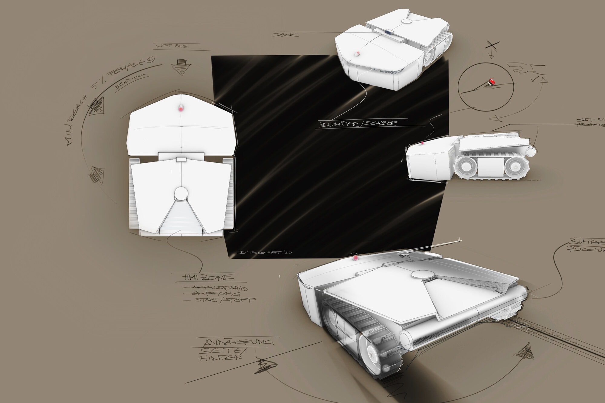Eine Anforderung war, mittels Photovoltaik autark im Feld zu sein. Simulationen zeigten uns, dass eine sehr zielgerichtete Mähstrategie nötig ist, um das Gerät mit der verfügbaren Energie zu betreiben. Jeder physische Faktor fällt dabei ins Gewicht und musste innerhalb des Target-Costing optimiert werden: von der Steifigkeit der Raupen bis zur Ansteuerung der einzelnen Mähmotoren-Wicklungen.