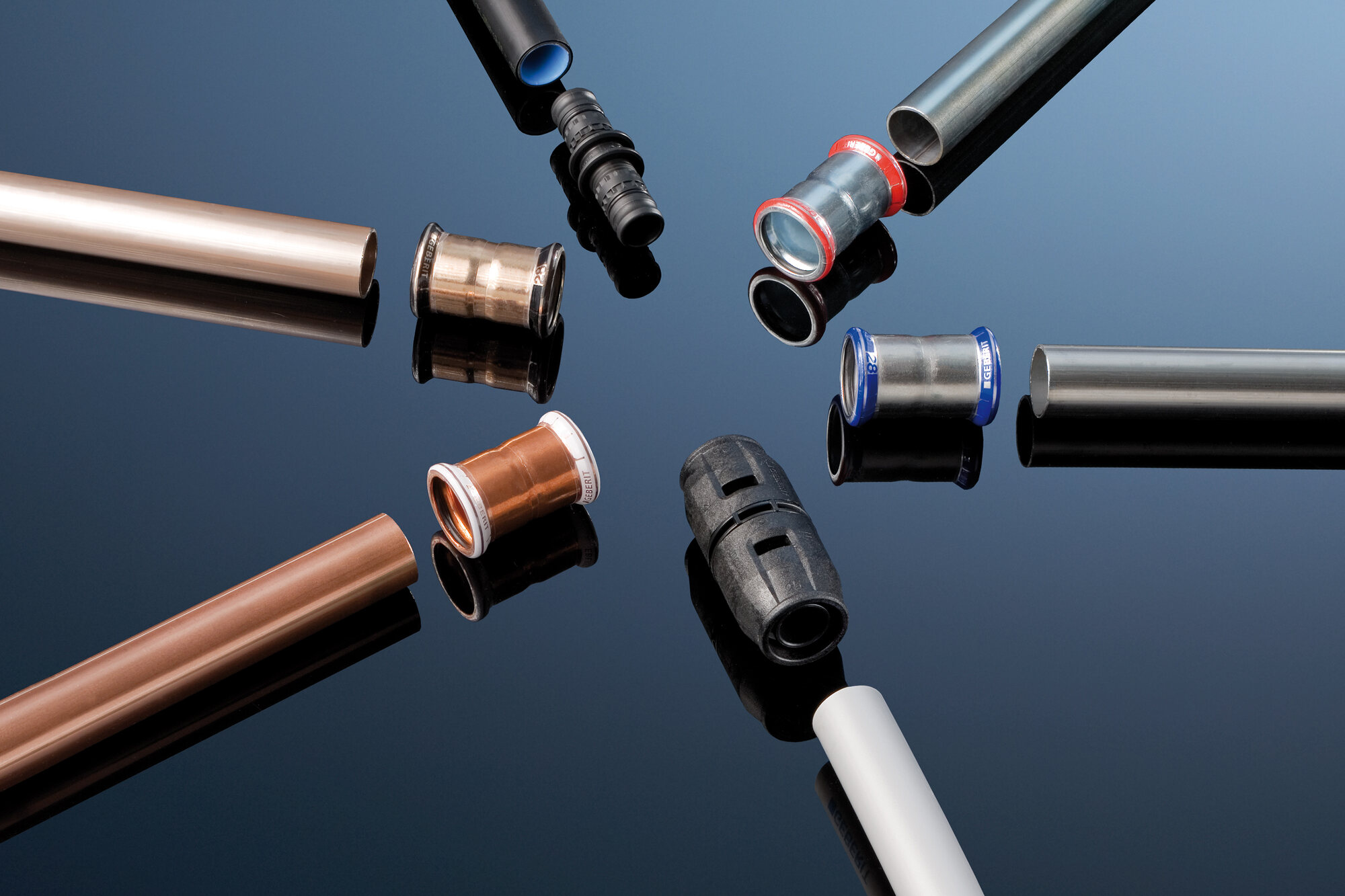 Until the introduction of the PushFit system, connectors were not considered to be particularly reliable for fresh water installations. But whenever Geberit establishes a new system as the standard, it is backed up by years of development and meticulous testing. For this reason, we paid great attention to the perception of robustness and design coherence of the approximately 40 different elements of the system.