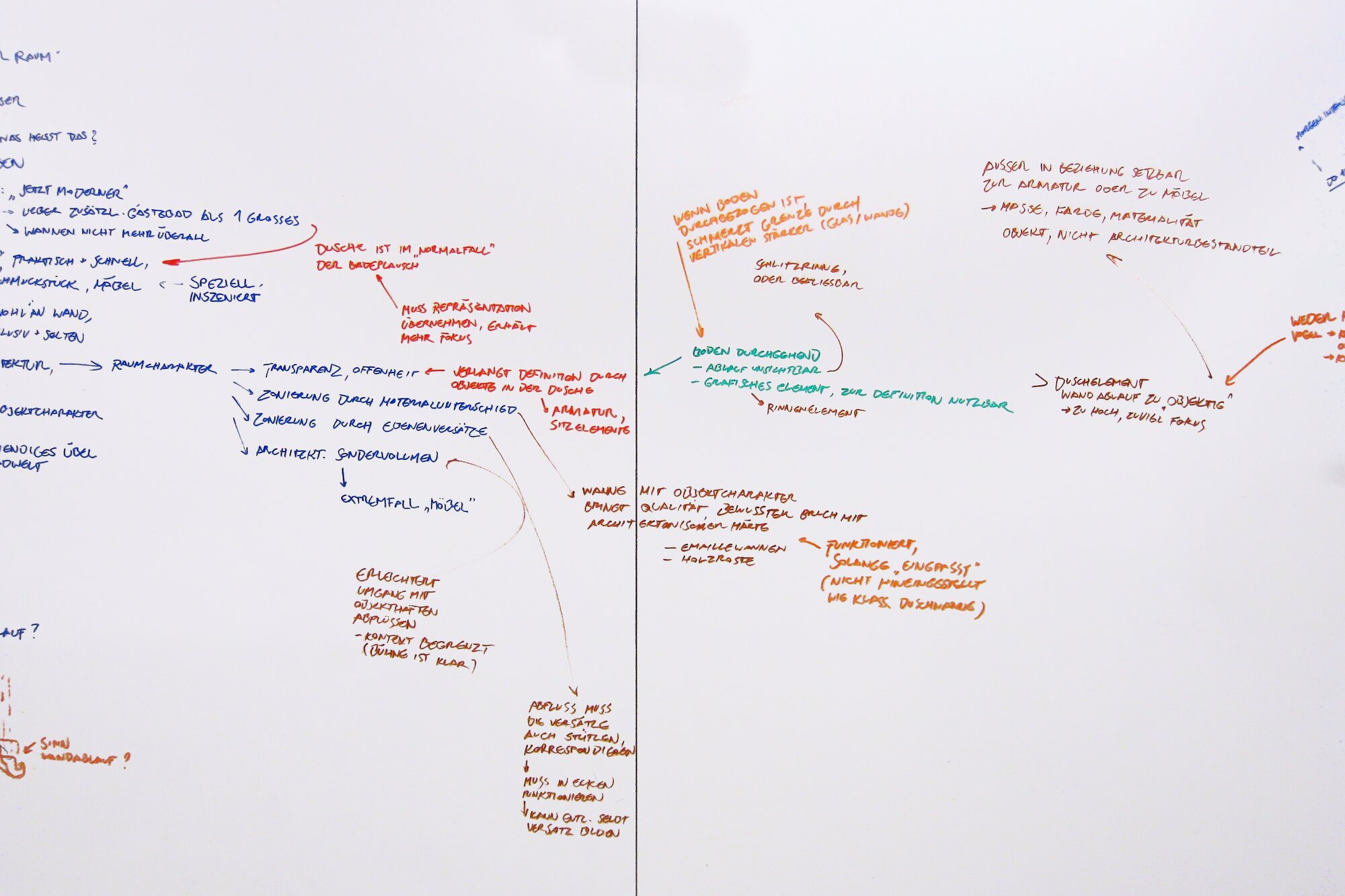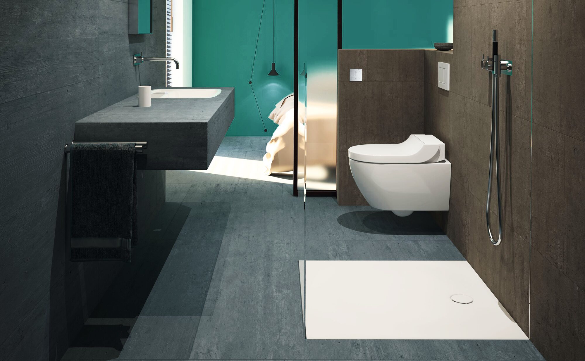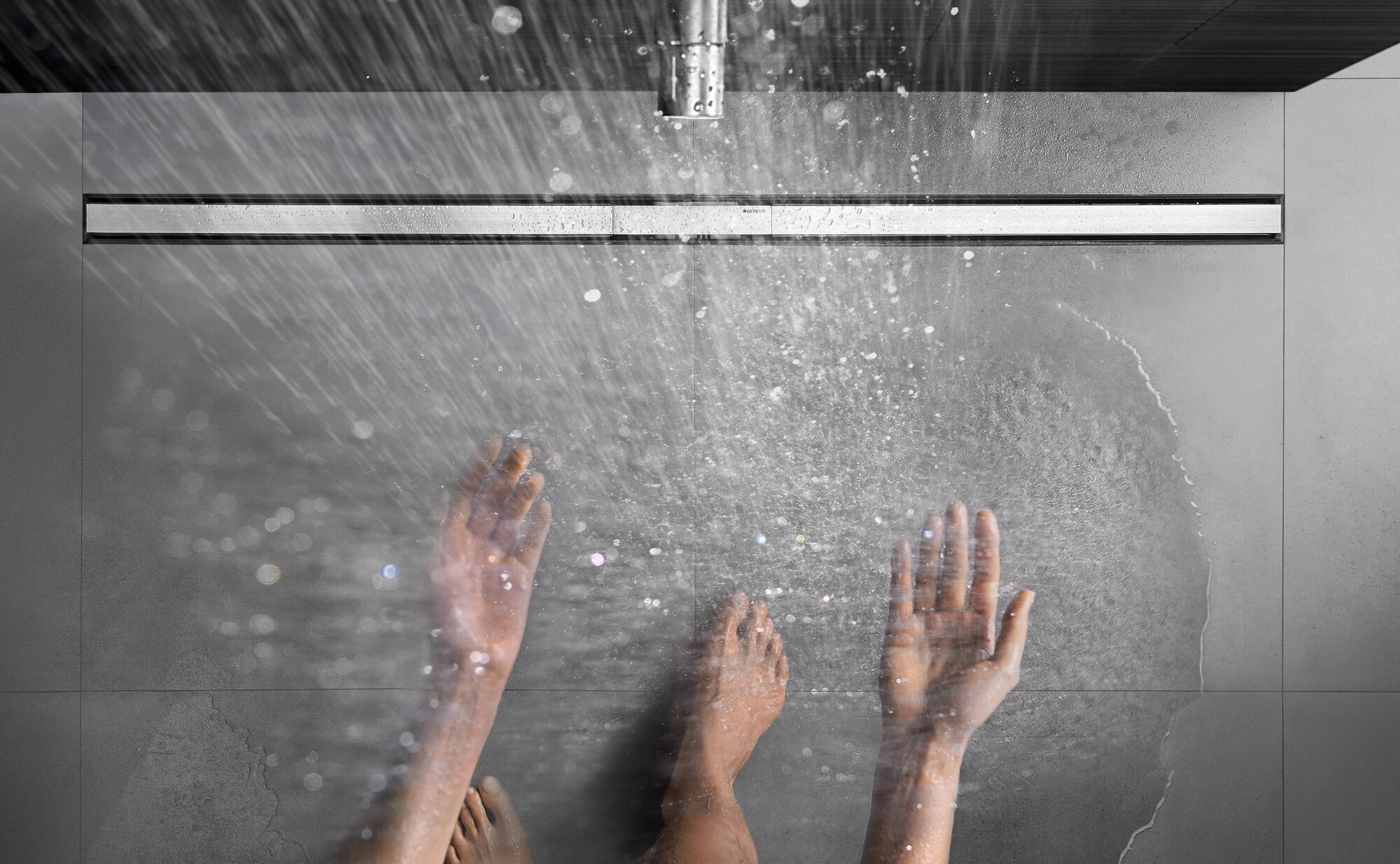 We’ve thought long and hard about showers for Geberit. Using a mixture of context analysis and surveys, we’ve been identifying which aspects are most important to users — not just with respect to showering, but also cleaning and the wider configuration within the home. We are convinced that the shower area must be conceived as an integral part of the built space, so we style the visible elements discreetly and in such a way that they complement the architectural qualities of the bathroom. This is only possible if the plumbing system that lies behind — or beneath — the shower has been factored into the bathroom design from the outset; the water and waste interfaces cannot be allowed to compromise the topology of the room or its surfaces.