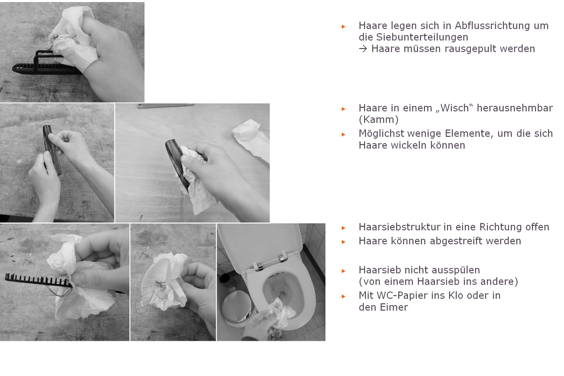While taking a shower is one of life’s pleasures, we haven’t turned a blind eye to the less agreeable aspects: someone has to do the cleaning as well. Our approach aims to get as much as possible done with a quick wipe of the surfaces, reducing the amount of deep cleaning required. Our design really gets started where most people’s stops — behind the cover panels. Top-quality, unfussy design, and not an ugly indentation or seam in sight. Even the comb insert, which keeps the drain free of hair, is a carefully planned feature: there’s no need to wait until you’re forced to scrape a clump of hair out of a clogged drain; you can simply remove the drain cover and the comb insert whenever you like, give it a quick wipe down with toilet paper, rinse it out and you’re good to go.